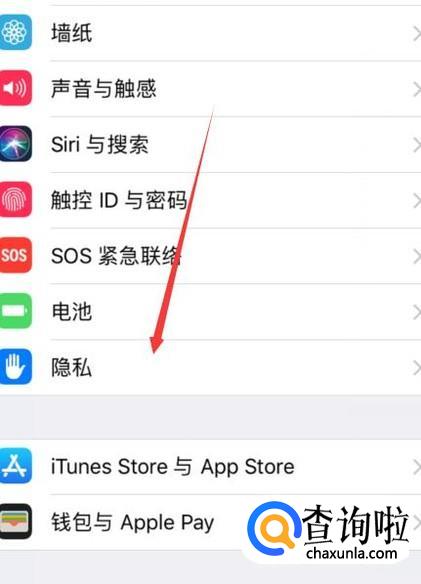 然后找到手机里面的隐私设置选项,然后就点击进入到里面去。