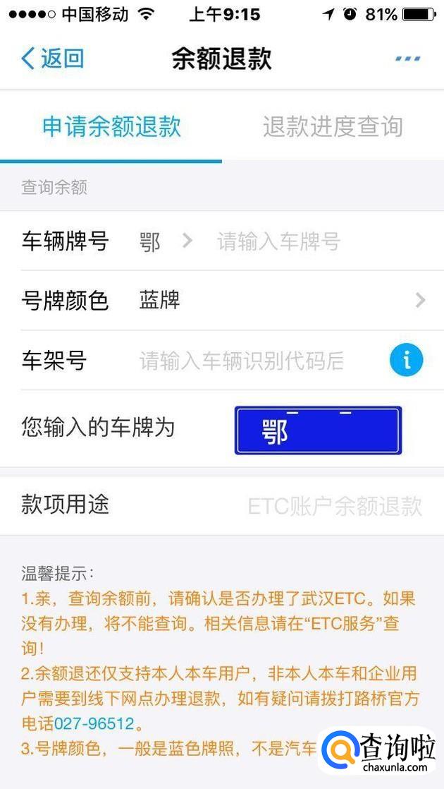 当然,我们可以通过网上办理的方式来办理ETC账户余额退款手续。我们需要登录“武汉路桥ETC”支付宝生活号,这个生活号目前仅仅支持个人用户办理业务,我们登录这个生活号后,按照系统提示,填写车辆信息和车主个人信息。