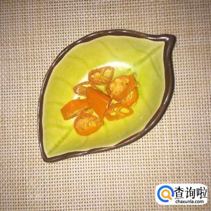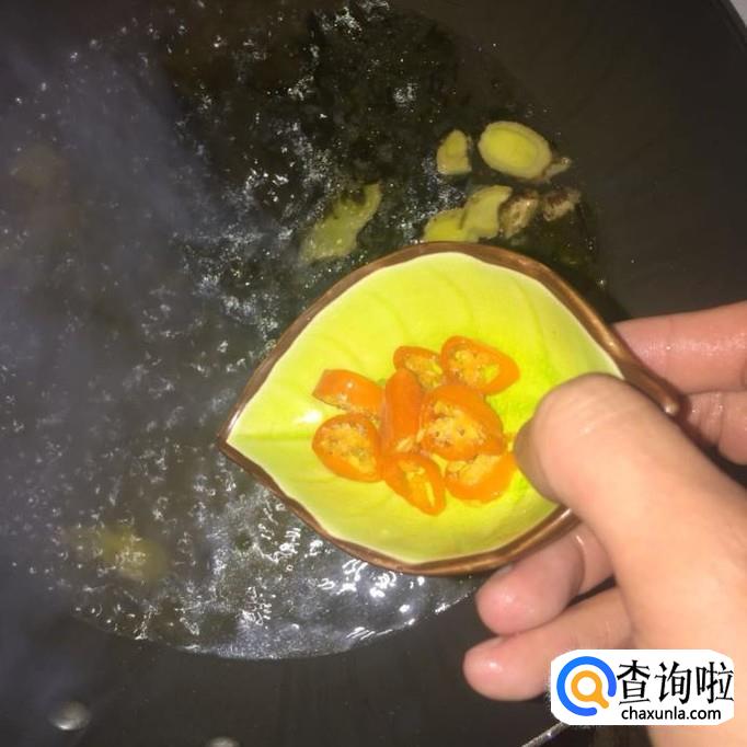 接着把黄色朝天椒洗净切成块,倒入锅中煮两分钟。