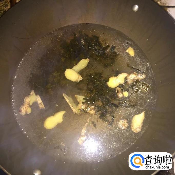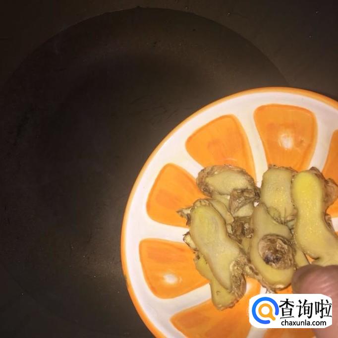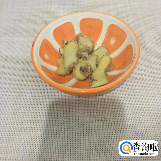 然后将生姜切成片,锅中放入适量的水,倒入生姜煮五分钟。