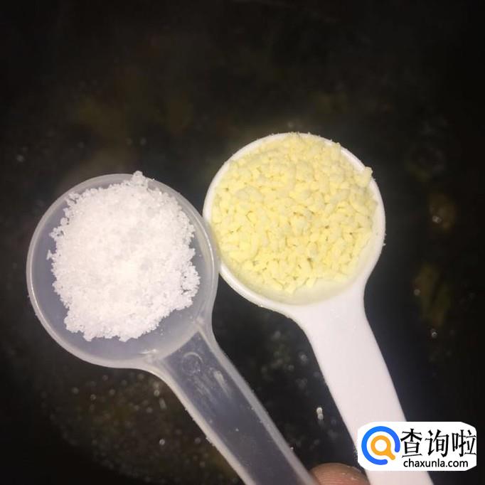 接着往锅中加入一勺的盐巴和一勺的味精,小煮片刻就可以出锅了。