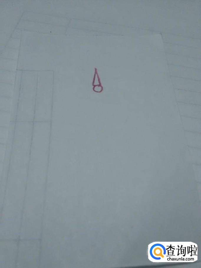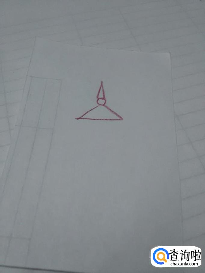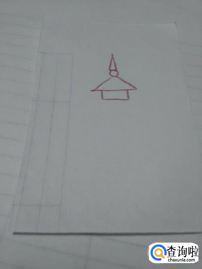 先用彩笔在纸上画一个三角形,表示宝塔顶部的尖儿。
