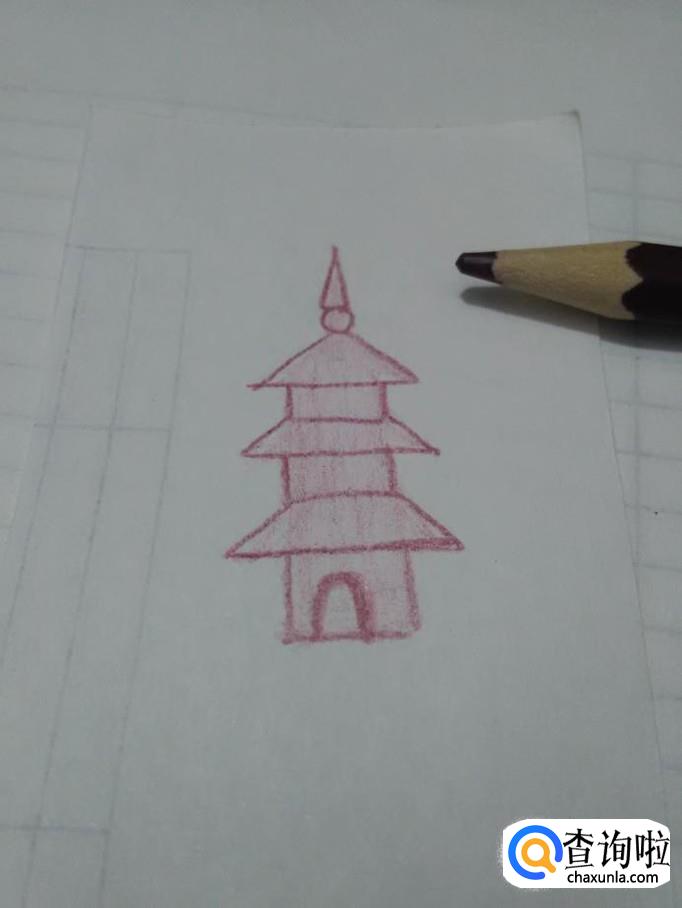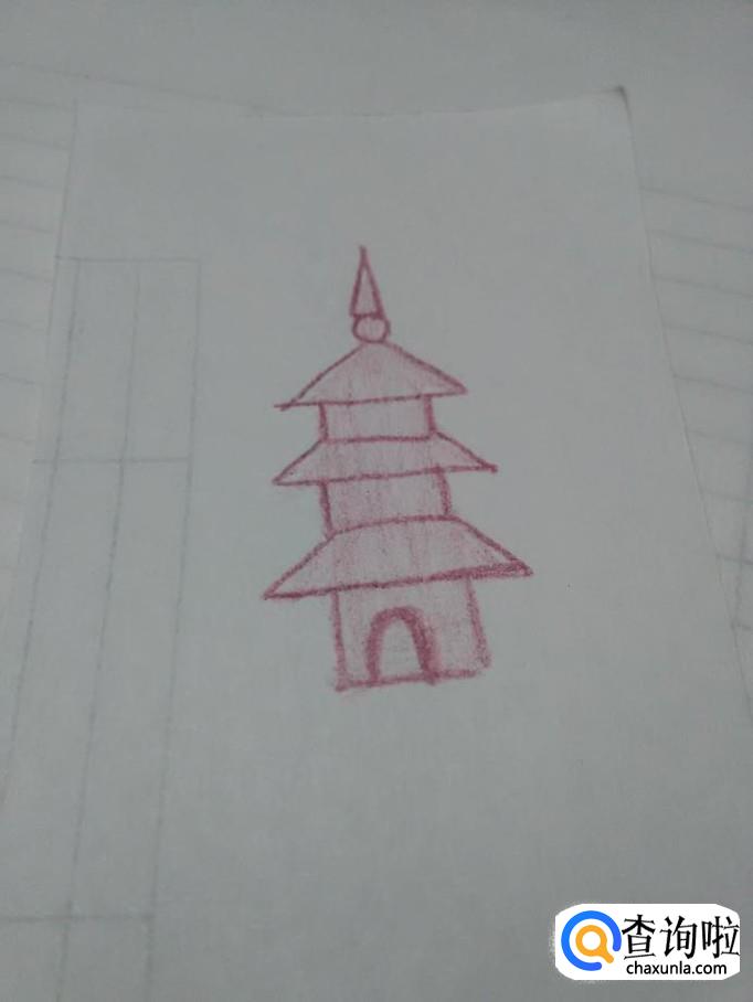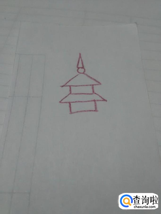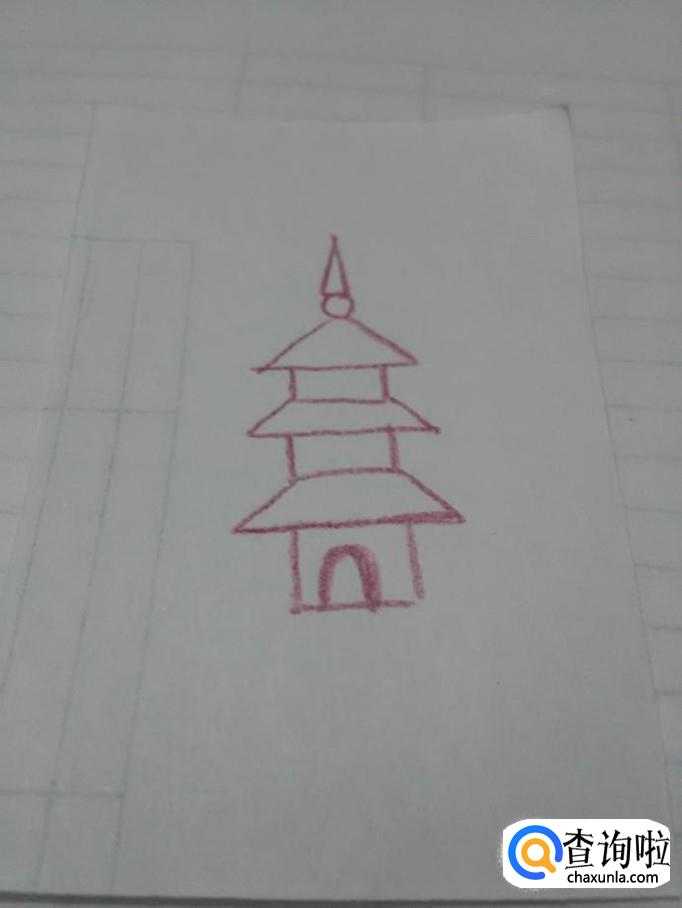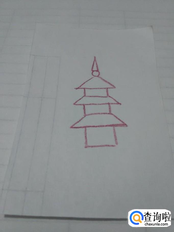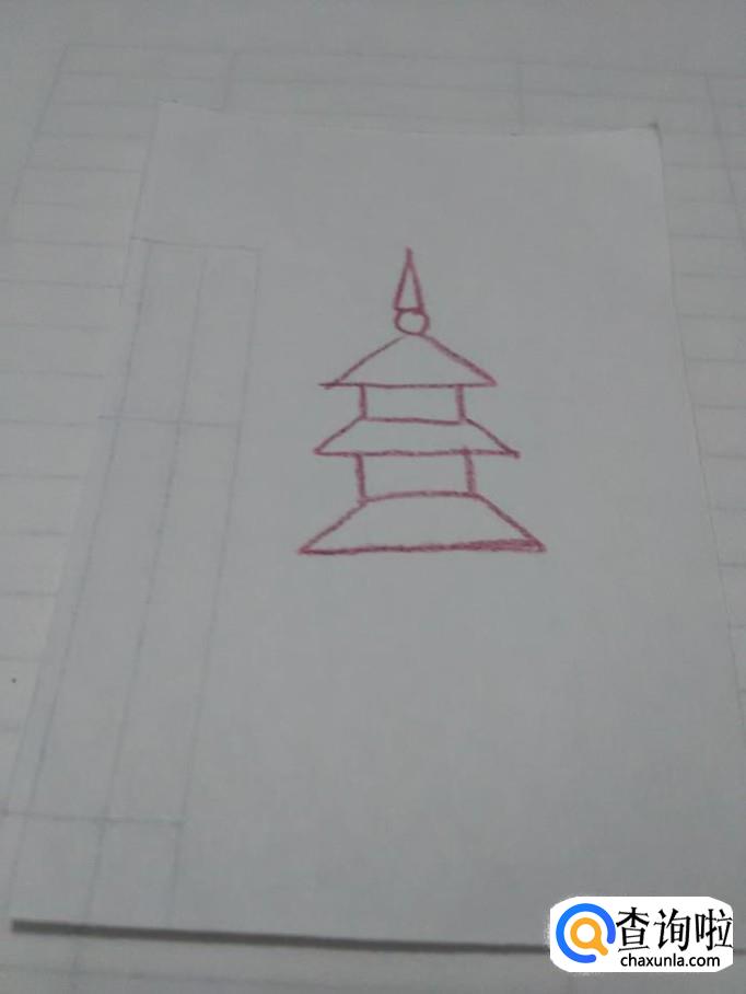 在第二层塔顶下面再画一个长方形,表示第二层塔。