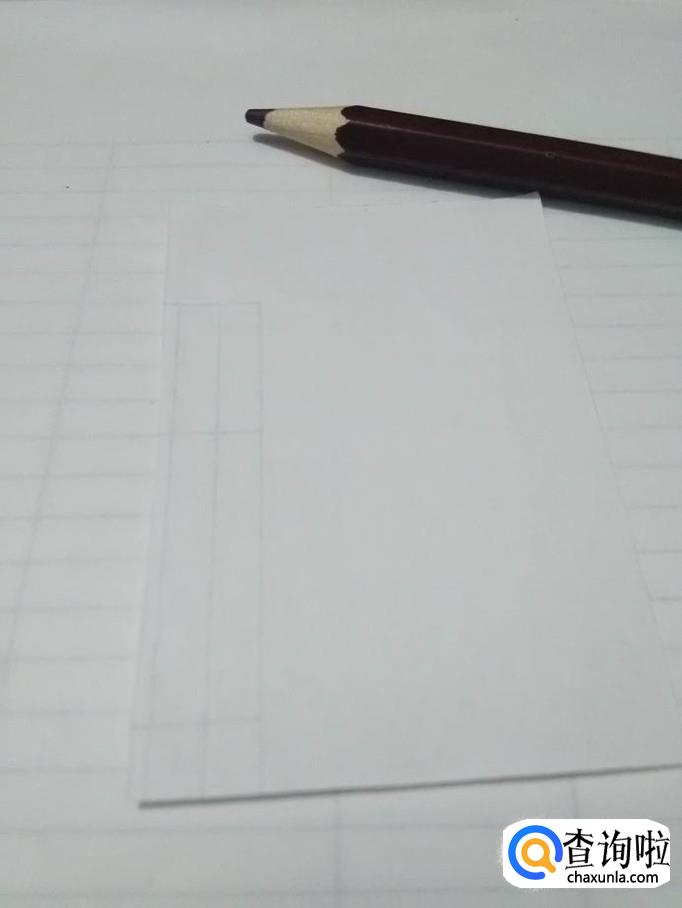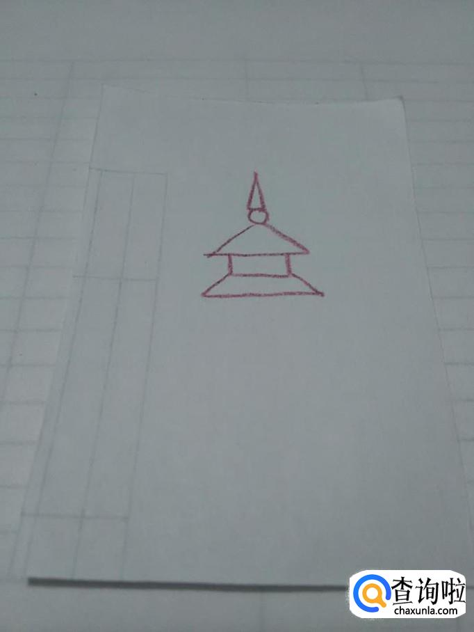 在长方形下面画一个梯形,表示第二层的塔顶。