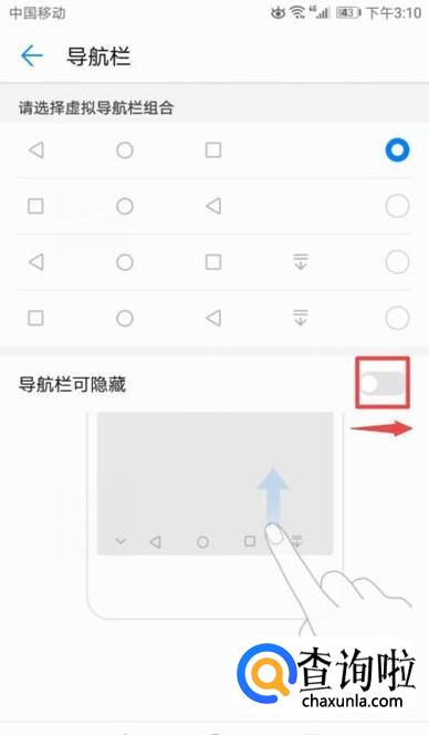 然后我们将导航栏可隐藏的开关向右滑动打开,这样就可以隐藏虚拟按键了。还是比较简单的,相信大家现在都会了。