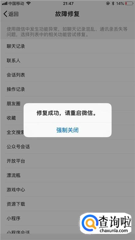 最后点击强制关闭并重新登录微信就可以了。