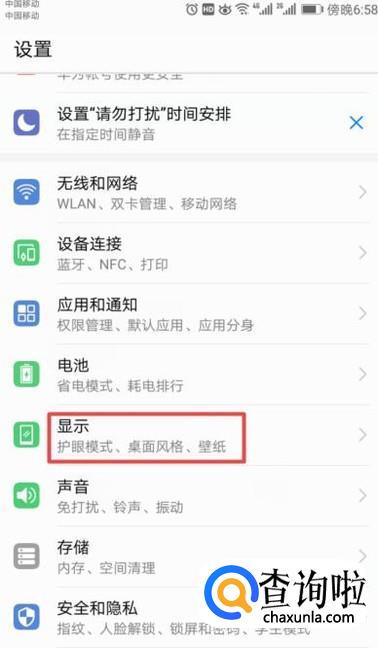 进入设置后,我们点击显示;