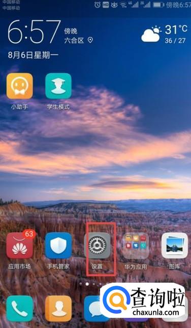 首先,我们打开我们的华为手机,然后我们点击手机桌面上的设置;