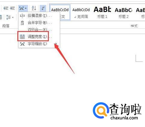选择两个字的人名人名,然后在上面找到段落里的中文版式选项,点击该选项在其内找到调整宽度选项,如图所示:
