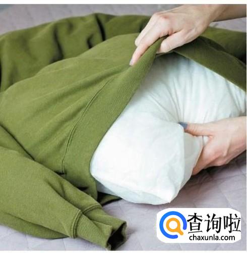 然后在其余部分放入棉花或者其他的一些比较柔软的旧衣服,同样将衣口用针线缝上。