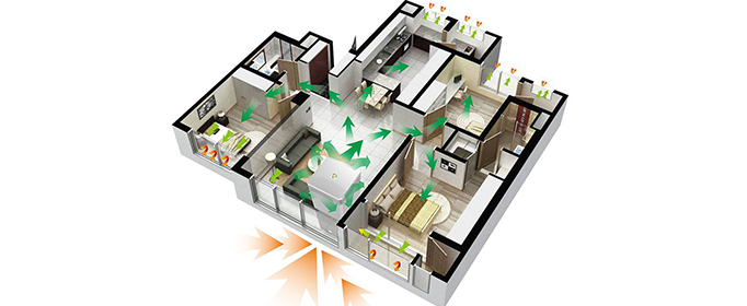 新风系统又是如何工作的?新风系统是由送风系统和排风系统组成的一套独立空气处理系统,其基本原理和作用是导入室外空气的同时排出室内浊气,达到不开窗也能够通风换气的效果。新风系统安装上静电集尘盒或滤网,就会具备空气净化功能。另外,新风系统再安装上热交换机,便具有热交换功能。