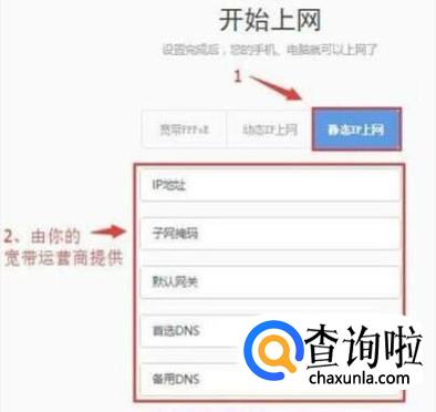 静态IP上网,在开通宽带的时候,运营商会提供一个静态IP地址、子网掩码、默认网关、DNS信息给你,用电脑本地连接,然后填写宽带运营商提供的静态IP地址及其他信息,电脑就能上网了。