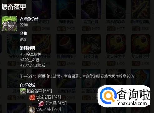 光有护甲不行,还需要魔抗,这样才扛得住对面法师的输出,所以后期振奋铠甲一定要出,破败具有吸血的效果,为了提高石头人的续航能力破败也必须出。