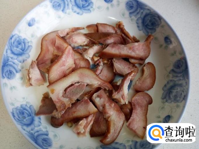 猪头肉切成0.3公分左右的片。