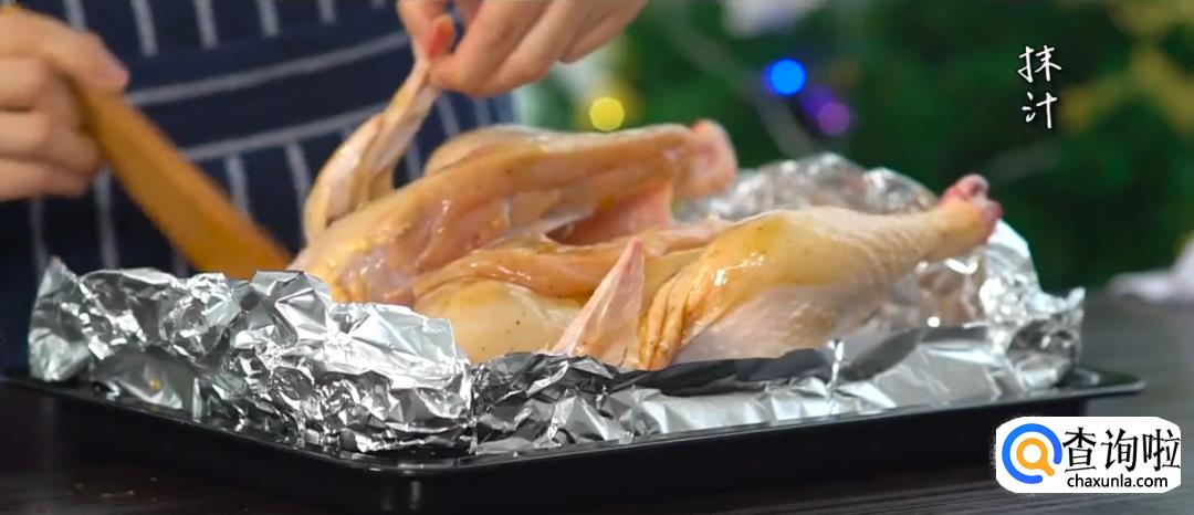 烤箱预热220度,放入烤鸡烘烤20分钟。