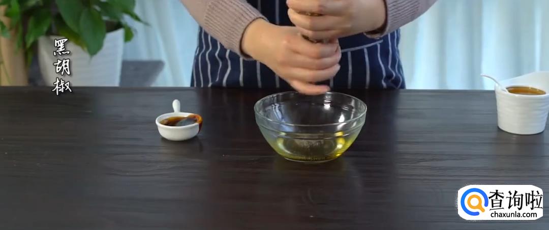 取碗倒入橄榄油,蜂蜜,蚝油,胡椒粉搅拌均匀。
