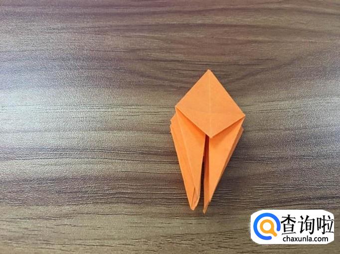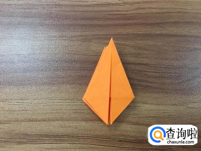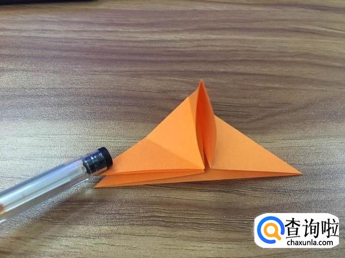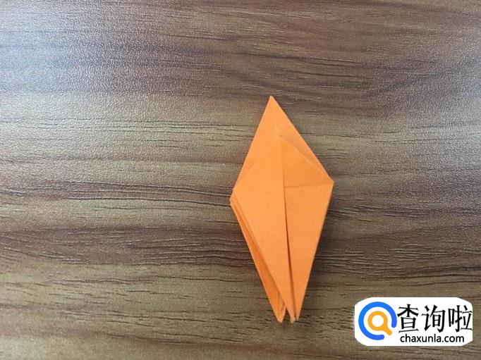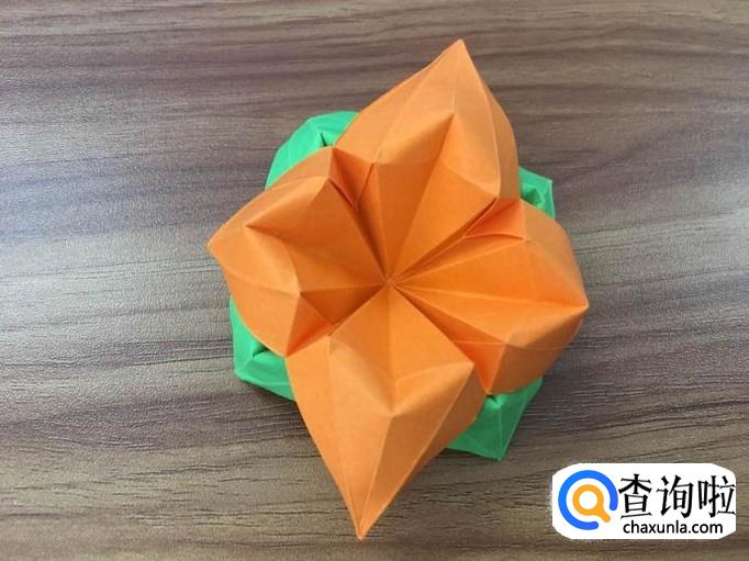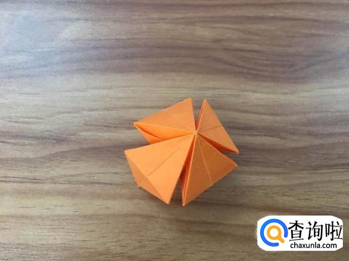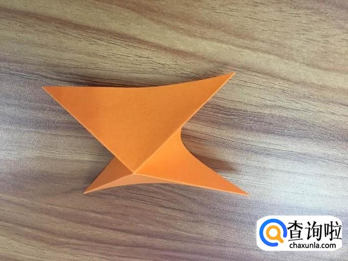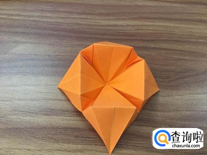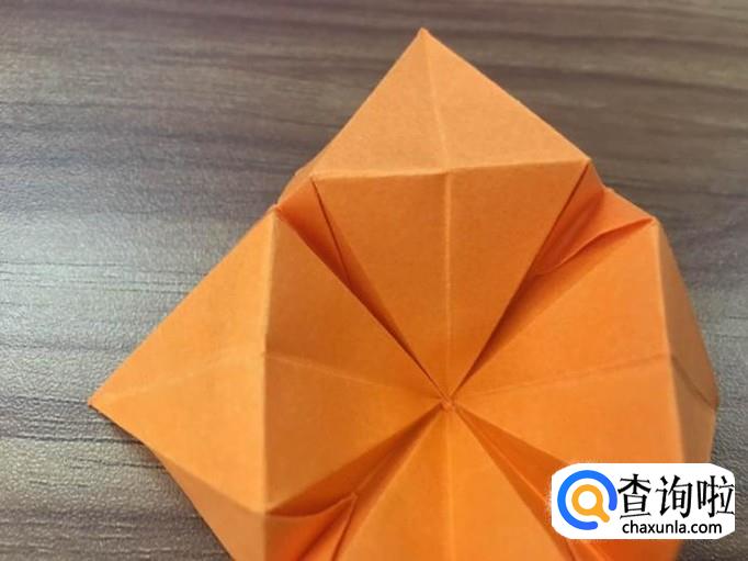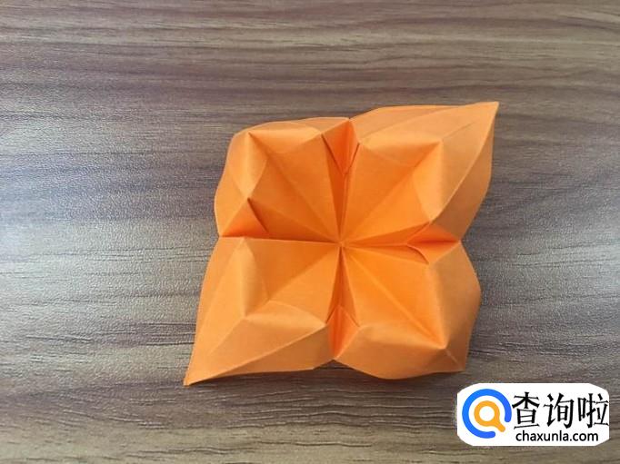 四个面全部撑起后,将顶点向内压折。花瓣的叶子就出来了。