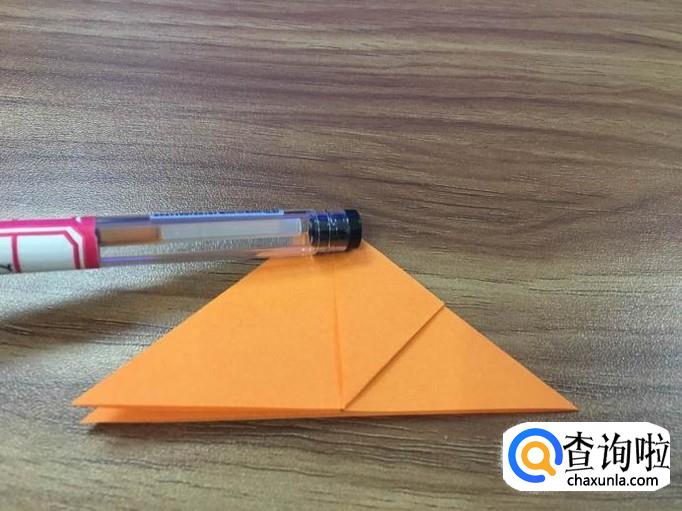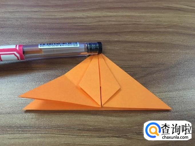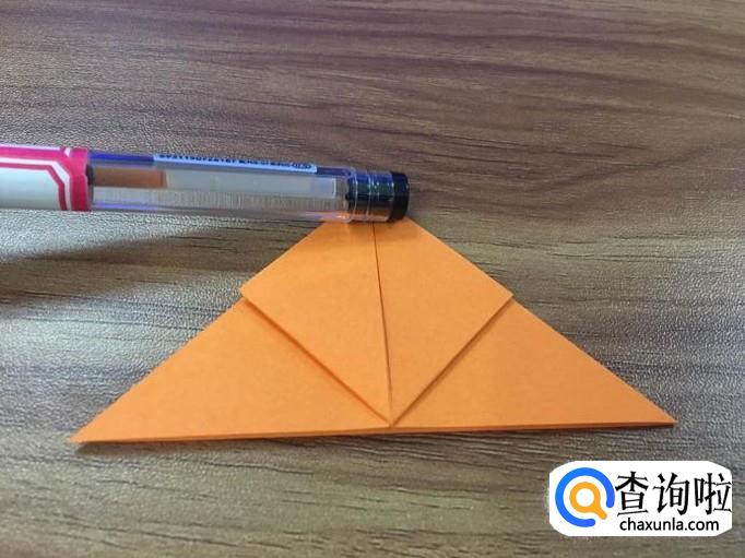 把其中一面的右边角向顶点折成小三角,左边同样折。如图