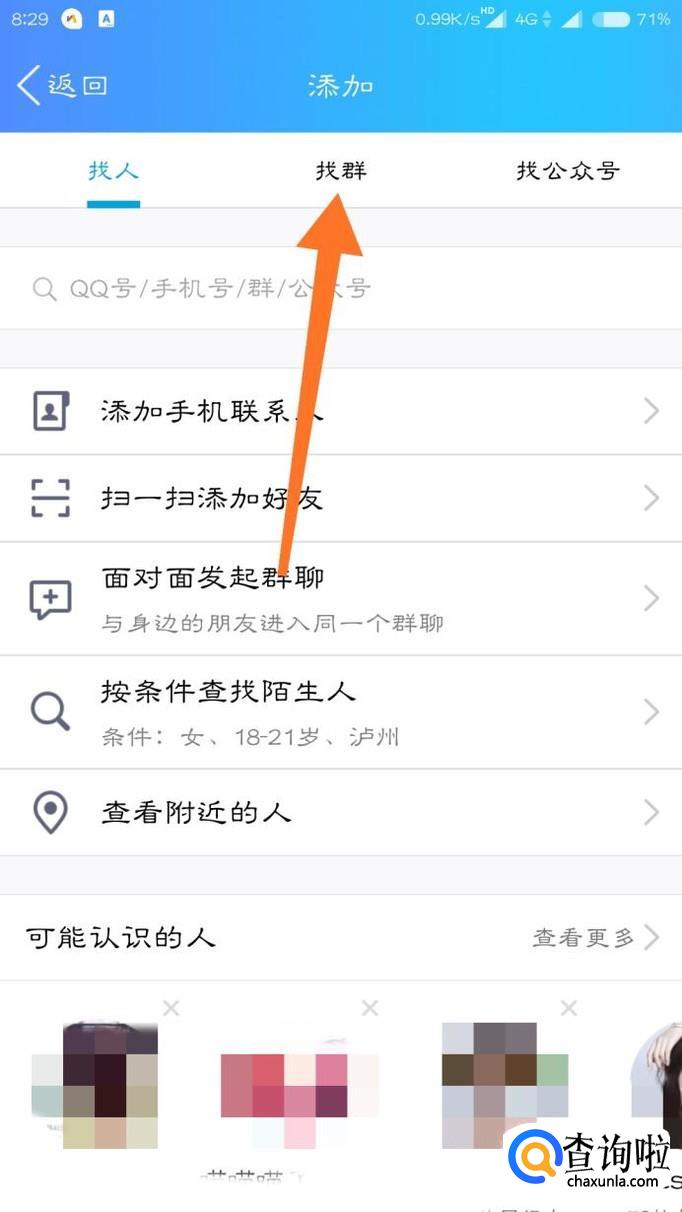 这里我们就可以看见输入框了,在输入之前点击中间的“加群”。
