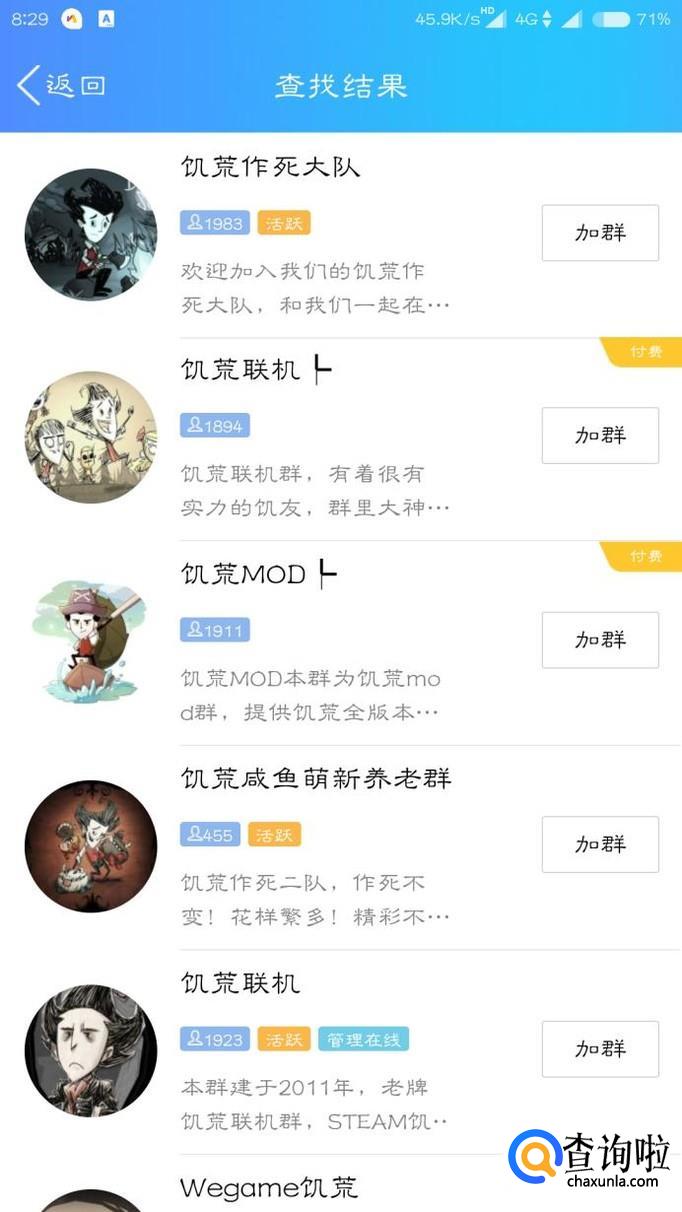 在这里就能看到各种饥荒群了,点击“加群”就可以加入了。