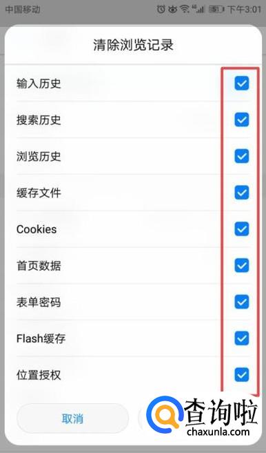 弹出的界面,我们选中所有选项,然后点击清除就可以了,这样就可以清楚浏览器的隐私了。