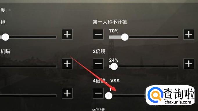然后我们调节一下镜头的灵敏度,如下图,然后进行射击测试。我们稍微把灵敏度调节高一下你会发现在开镜的情况下左右转移的时候,你稍微移动一点就会拉的很远。