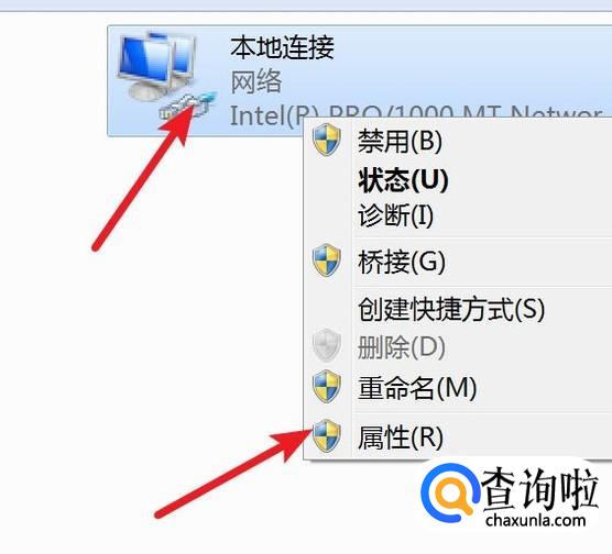 打开页面后,就可以在这里看到有本地连接了。右键点击它,然后点击属性,就可以对其进行设置了。
