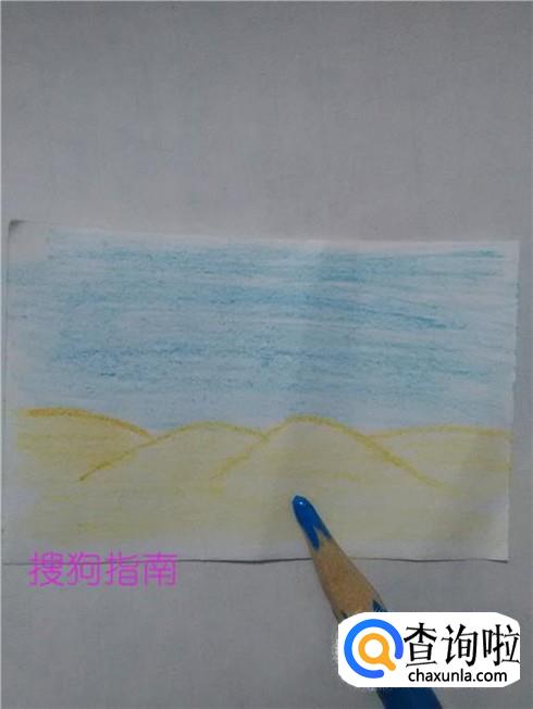 画简单的沙漠,要画出高低起伏的沙丘和蓝蓝的天空,下面就来画沙漠。