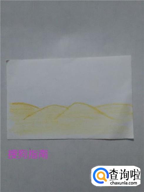 先用橘黄色彩笔在纸上画几条相连的弧线,表示一座一座的沙丘。