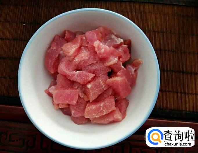 接下来我们就需要准备粽子馅了,嘉兴的话以肉粽比较出名,我们先把猪瘦肉切成小块用调料腌制、糯米洗净备用。