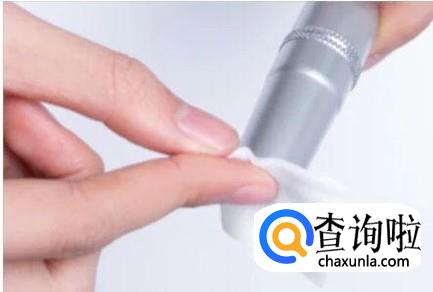 然后取出采血笔,对采血笔的笔头进行消毒,因为采血笔头直接接触到我们的血液,如果处理不干净的话很危险,所以每次使用都要消毒。