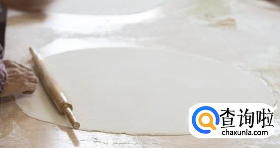 揉好面团后,放在一旁20-30分钟左右,然后用擀面棍将面团擀开,但不要擀得太薄