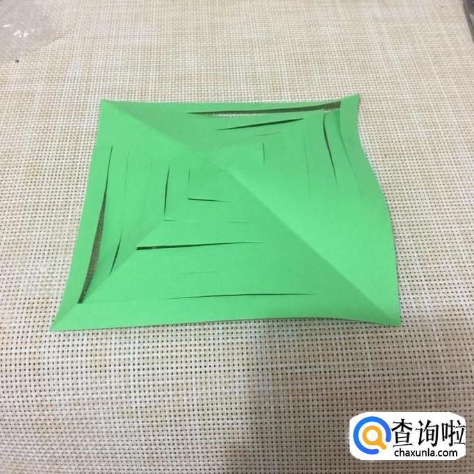 接着用剪刀将折纸五等分并打开,如下图所示。
