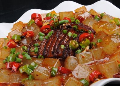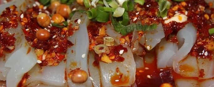 另外,还有一种煮凉粉的吃法,这种吃法一般是在四川地区。把凉粉过水煮了之后,就上碎芹菜和葱,浇上炒制的酱料,又香又辣。对于煮凉粉来说,最重要的就是酱料,如果酱料没有炒制好,那么煮凉粉也不好吃。