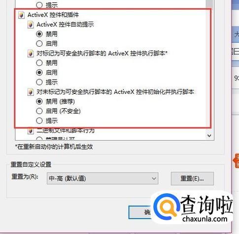 在"安全"中,点击"自定义级别",然后将ActiveX插件都改为启用,这样在登录网银的时候就不会出现问题了。