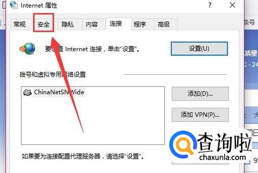 在新弹出的对话框中,点击对话框上方的"安全"。