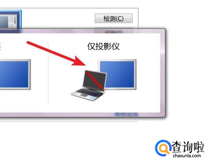 也可以选择‘仅投影仪’,这样显示器上就不显示内容,只在投影仪上显示了。