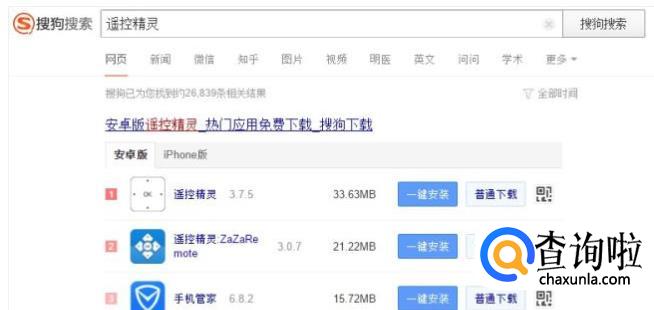 打开搜索,输入遥控精灵关键字。