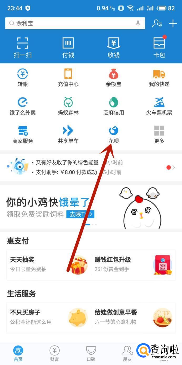 进入之后,点击图示位置的“花呗”,如图所示。