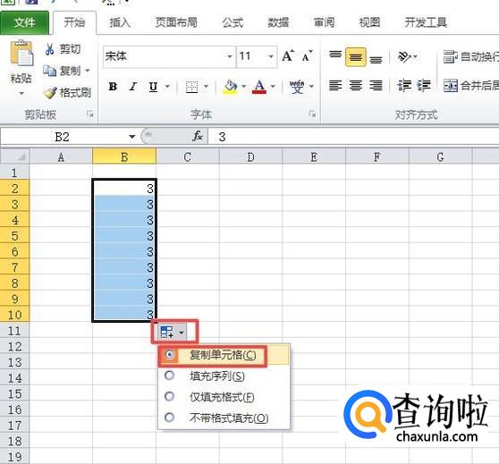 当我们下拉完成后,会出现一个符号,我们点击符号的下拉箭头,之后我们选择复制单元格;