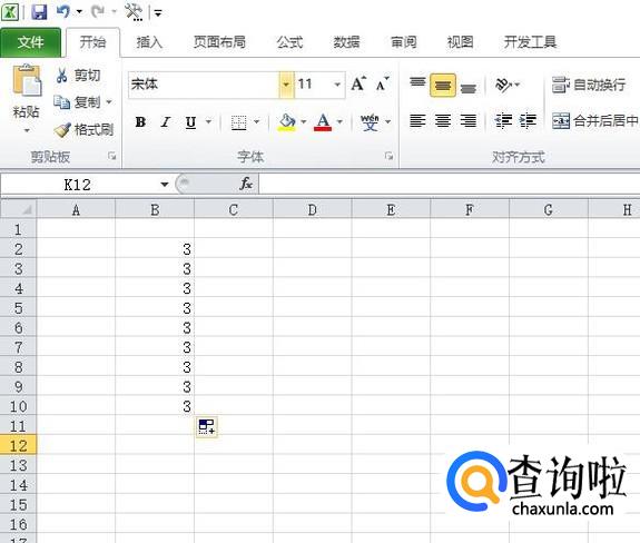 之后我们点击空白的单元格,结果如图所示,这样就重复数字了。