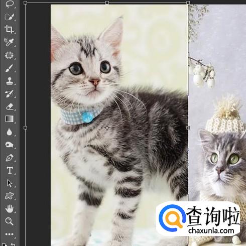 再看画布这里,鼠标点住上层图片移到画布的左边。调整大小与位置。
