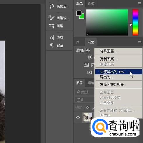 鼠标放在图层上,右击,弹出菜单再点:快速导出为PNG;然后,保存在文件夹即可。那么,两张图片即为一张图片。
