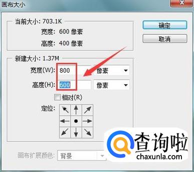 点击画布大小选项在弹出的对话框内设置画布的宽度和高度如图所示: