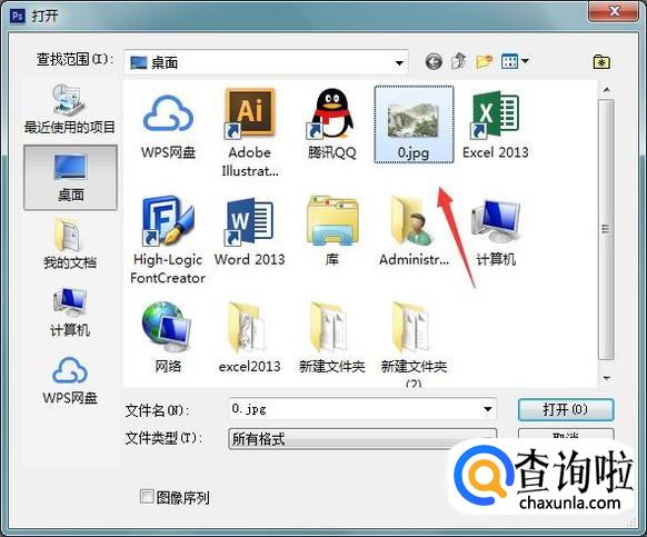 打开ps按下Ctrl+O键在弹出的对话框内找到我们的图片,如图所示: