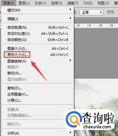 点击图像选项在其下拉菜单那里找到画布大小,如图所示: