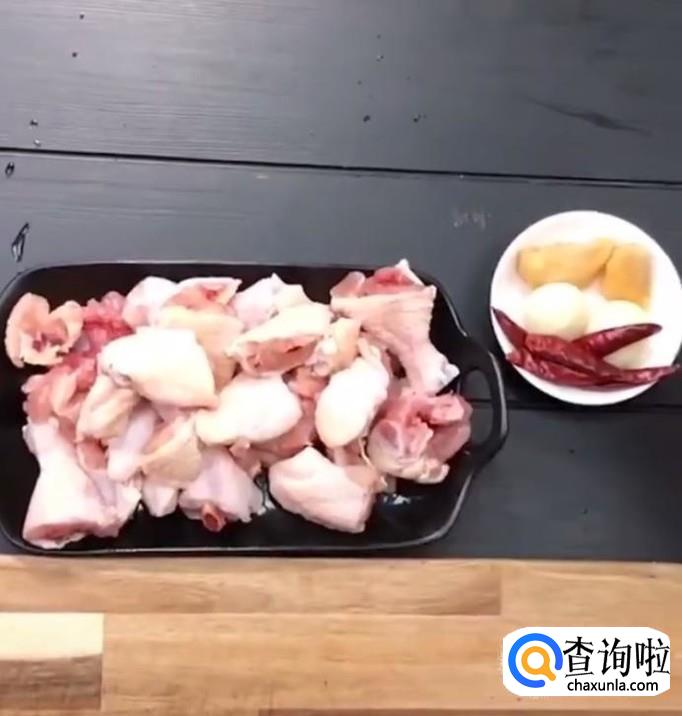 首先,我们将鸡肉清洗干净,用刀剁成小块,放入热水锅中焯一下捞出备用