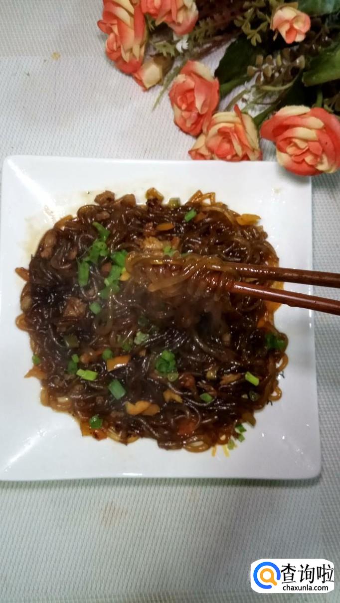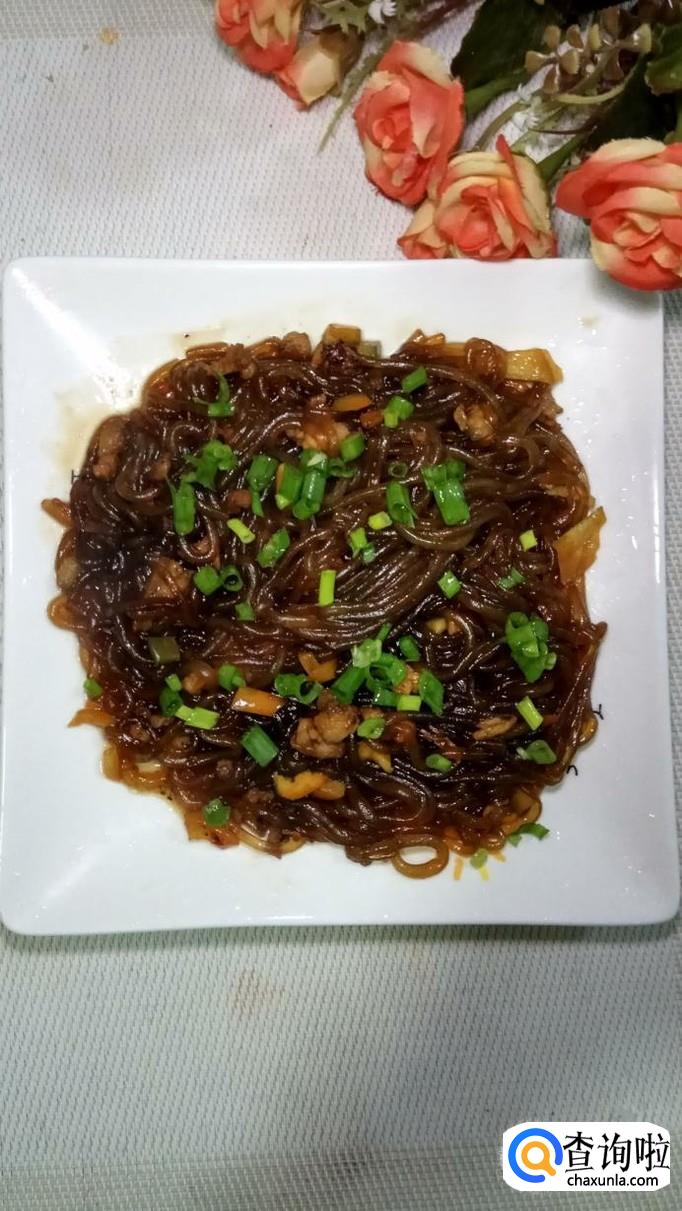 炒好后,出锅装盘,准备适量小葱洗净,切碎后撒在盘中,美味的肉末粉丝就做好了。