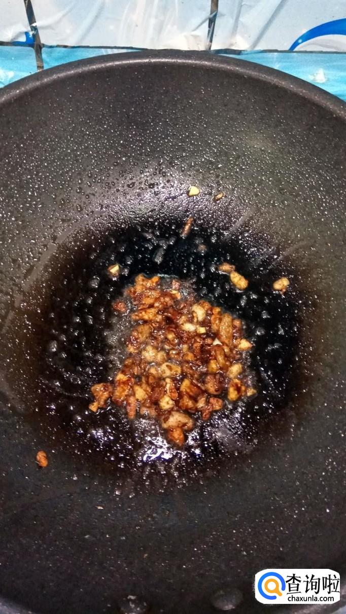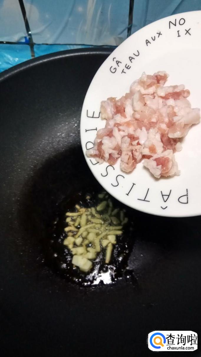 准备适量姜和蒜切成末,锅中烧热油,油热后将姜末和蒜末放入锅中炒香,喜欢辣的,还可以放些干辣椒炒香,然后将肉末倒入锅中炒熟。