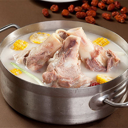 要想把骨头汤熬成奶白色一定要保持锅内高温,把成团的脂肪打散变成小颗粒与水混合在一起。期间切忌老是揭开锅盖去看,不用担心水会烧干,骨头汤熬成后基本是将一大锅水熬成了半锅奶白色味道浓郁的汤。